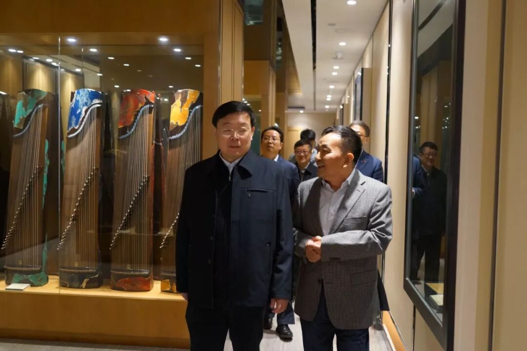厂长王国振陪同周部长参观民族乐器陈列馆