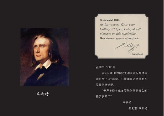 ▲李斯特亲笔签名盛赞布罗德伍德钢琴