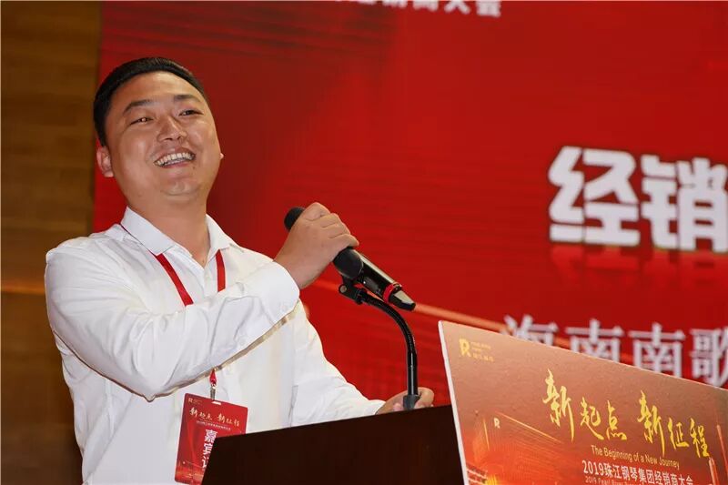 颁奖环节过后,海南南歌琴行董邵南总经理作为优秀经销商代表发言,分享了他们的管理理念、管理方式和创新举措,为在座经销商提供了借鉴和参考。
