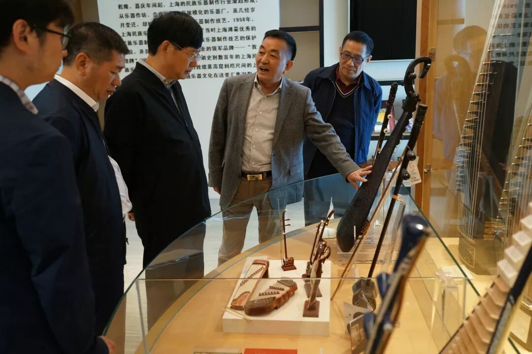 2019年5月9日,上海市企业联合会副会长兼秘书长蒋苏平一行莅临上海民族乐器一厂考察调研,参观了企业的民族乐器陈列馆和生产车间。厂长王国振陪同参观并进行了座谈交流。