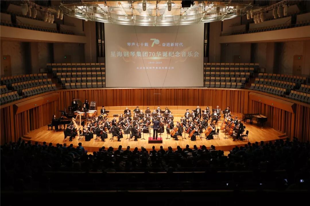与共和国风雨同行,与时代华章共鸣。2019年6月11日,北京星海钢琴集团有限公司“琴声七十载 奋进新时代”建厂70周年纪念音乐会在国家大剧院音乐厅隆重举行。中国轻工业联合会党委副书记、中国乐器协会理事长王世成,一轻控股公司党委书记、董事长苏志民,一轻控股公司党委副书记、总经理阮忠奎,党委副书记、工会主席洪艳华,原国家大剧院副院长王争鸣,中国乐器协会常务副理事长曾泽民、副理事长孙瑞勇,北京星海钢琴集团有限公司党委书记、副总经理金大钧,党委副书记、总经理孟宇,一轻控股公司党政领导班子成员、各职能部室、一轻所属各企业的主要领导,星海钢琴集团领导班子成员,以及为星海发展做出过突出贡献的劳动模范代表、经销商代表、星海钢琴集团全体员工汇聚一堂,隆重纪念星海钢琴集团建厂70周年辉煌历程。