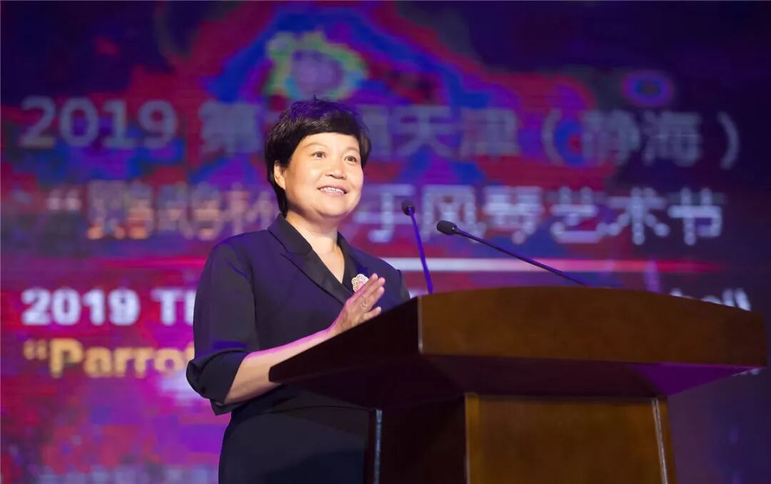 本届艺术节组委会名誉主席、天津市静海区副区长张金丽致辞。她表示,本次活动作为天津市第四届市民文化艺术节的重要组成元素,“鹦鹉杯”手风琴艺术节已成功举办六届。规模相比上一届增加五百多人次,活动参与总人数达到两千人次,“鹦鹉杯”手风琴艺术节已成为静海的特色音乐文化名片。