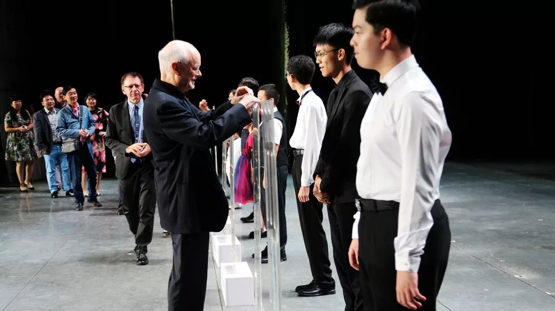 2019黄龙音乐季·钢琴艺术周颁奖典礼邀请金银铜奖获得者依次登上黄龙音乐厅舞台领取奖杯和证书,全体钢琴评委参与典礼并亲自颁奖。