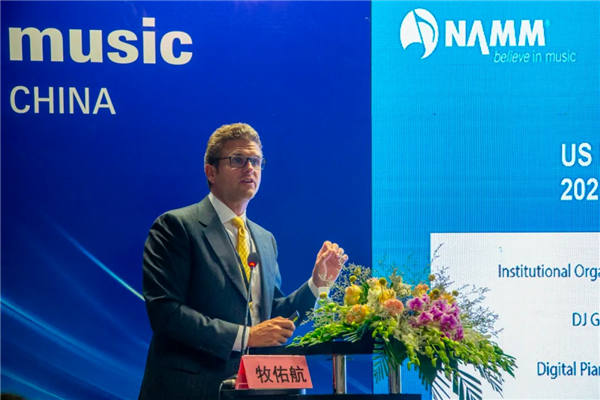 美国国际音乐制品协会总裁兼首席执行官牧佑航则带来乐器行业的国际视角分享。他着重分析美国及全球乐器行业发展前沿趋势与国际市场动向,对企业如何更好地融入全球产业链、参与国际乐器产业融合,为乐器企业“走出去”提供重要行业信息参考。
