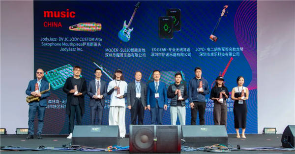 上海民族乐器一厂有限公司的敦煌牌·259698PS/蝶花并蒂古筝,以传统大漆与蛋壳工艺结合现代设计,传承非遗技艺的同时展现创新魅力;乐海乐器有限公司的乐海·HM904GJZ-2海铭蓝高音琵琶则与杨靖教授共同研发,打破传统24品形制,增加25品和26品音位,满足专业演奏全音节的需求;南京爱韵乐器有限公司的艾尔音·AV-D501 电小提琴,融合现代科技与经典制琴工艺,以多功能设计和环保材质引领电声乐器新风尚;扬州金韵乐器御工坊有限公司的金韵·回响古筝,颠覆传统古筝形态,极简方形设计结合均衡共振结构,让音色更纯粹饱满,在传承中创新;舒密尔钢琴(中国)有限公司的舒密尔·F123SE钢琴,作为品牌140周年纪念之作,承袭百年制琴工艺精髓,以沉稳厚重琴身轮廓和一体式三角钢琴键盖设计,让演奏者沉浸于旋律流动;Fender公司的Fender·美产超极豪华系列 60s Stratocaster电吉他,搭配Pure Vintage拾音器,带来经典与现代结合的音色体验;赛尔玛亚洲(北京)销售有限公司的Selmer·Prologue中音萨克斯,设计轻盈且符合人体工学,音色温暖富有表现力,适合初学者和业余爱好者多种音乐风格;长沙楚门乐器有限公司的楚门·楚门280自由之翼木吉他,以精选北美西提卡云杉和印度玫瑰木的经典声学配置,音色立体多层次,打破传统面单刻板印象。