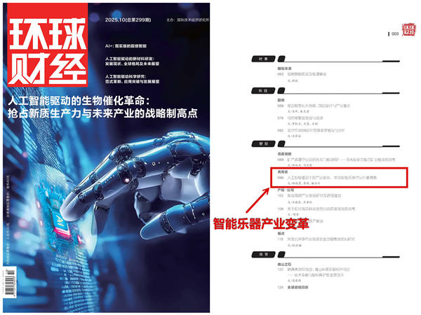 编者按:当前,文化强国建设与制造强国战略正加速融合,科技创新正成为推动乐器产业高质量发展的核心引擎。面对人工智能、物联网、云计算等前沿技术的加速演进,乐器产业正由传统制造迈向数字化、智能化与生态化的系统升级。中国乐器协会转载《环球财经》杂志刊发的《人工智能驱动下的产业变革:中国智能乐器行业年度洞察》一文,旨在系统呈现我国智能乐器领域的最新进展与未来趋势,展现科技赋能乐器制造业的新质生产力格局。通过传播权威研究成果与前瞻思考,协会希望凝聚行业共识,推动科技创新、教育融合与国际合作协同发展,为建设具有全球竞争力的中国乐器产业体系提供智库支撑与方向引领。