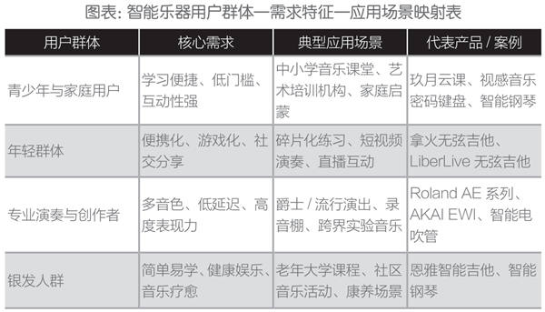 随着智能乐器的快速发展,其用户群体已从专业演奏者逐步扩展至更为多元的消费人群,并在教育、娱乐、舞台及跨界等多个场景中展现出丰富的应用价值。