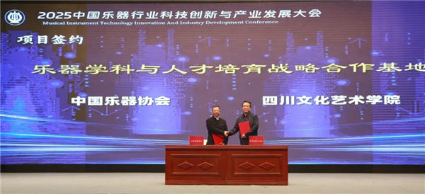 在年度科技成果之外,本届大会通过产学研合作项目的落地,进一步强化了行业创新的供给体系。中国乐器协会与四川文化艺术学院共建“乐器学科与人才培育战略合作基地”签约仪式在大会同期举行,围绕人才培养、成果转化、技能评价等方向开展合作。相关项目的落地,为乐器产业构建稳定的人才供给与持续创新能力提供了新的支撑。