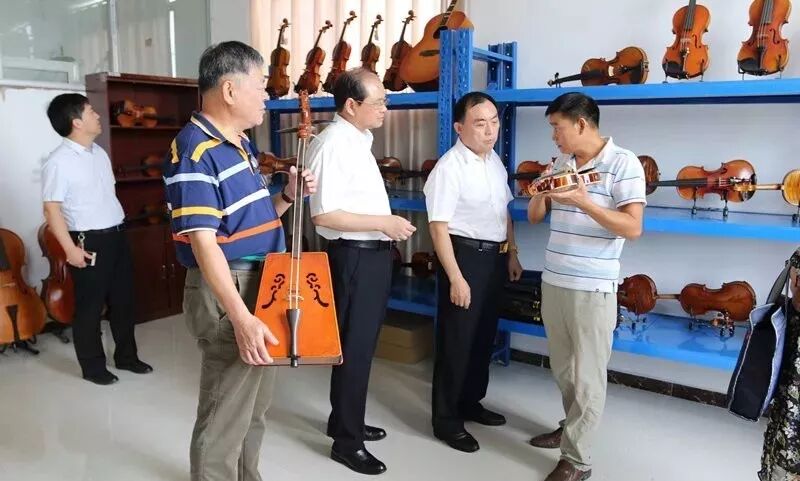 近几年,在国家大力推动文化产业和产业转型升级的政策指引下,河南确山县委县政府充分利用地区性综合资源,大力吸引本地及外地提琴产业的投资商和从业者来确山投资兴业,快速的形成了特色产业的集聚效应,在国内同行业中产生了一定的影响。中国乐器协会十分关注和赞同确山县的科学举措,并将一如既往的支持和推动提前产业的发展。为进一步了解产业的发展现状,9月2日,中国乐器协会委派中国乐器协会副理事长、中国乐器协会提琴分会会长李书一行考察河南省确山县的提琴产业,确山县政府副县长王月红、县科工局局长李伟、县文化广电和旅游局局长贺建格、竹沟镇镇长张宏艺等相关单位负责人陪同考察。