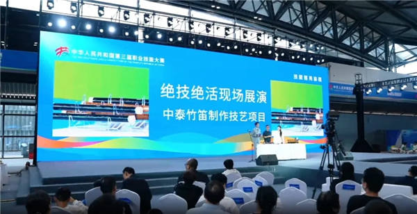 9月22日,绝技绝活展演精彩不断,削竹坯、钻音孔、校音......中泰竹笛制作技艺传承人丁志刚现场展示竹笛制作的精细度与难点。其中最能体现这项技艺之“绝” 的环节就是“调音”,需要按照现场的温度把竹笛调成现场能演奏的音高,当然音准也非常重要。完成这一步既要有足够的刀工,又要有耳朵的灵敏度。