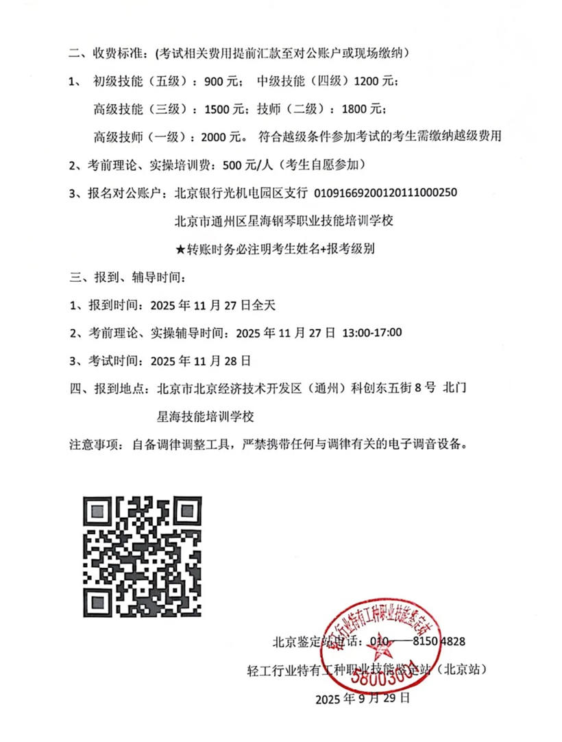 2025年第二批职业等级评价通知(北京职业能力评价鉴定站)-中国乐器协会