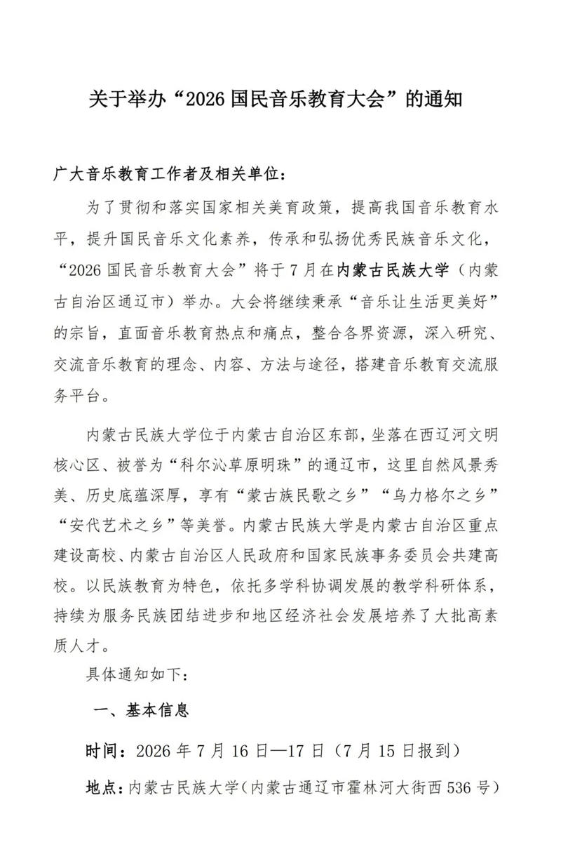 当前位置:首页>公告>关于举办“2026 国民音乐教育大会”的通知