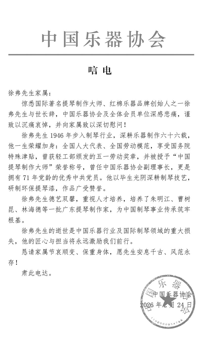 唁电-中国乐器协会