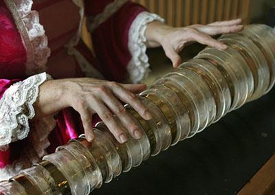 玻璃碗乐器——本·富兰克林(ol' Ben Franklin )在1761年创建了这个奇妙的乐器。他受到玻璃碗声音的启发创造了这个乐器。三十七个碗被排列在一个主轴上,并慢慢旋转。演奏者用湿指尖接触这些碗。该乐器每次可以弹出两个音调,产生一些让人流连忘返的美丽的弦。在其鼎盛时期,100多名作曲家为其作曲,包括莫扎特和贝多芬。