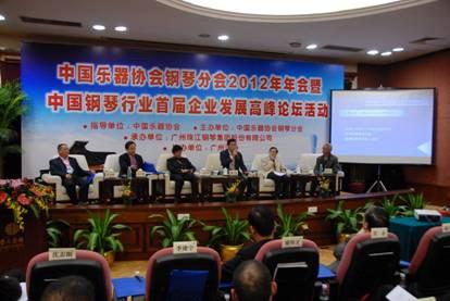 中国乐器协会网讯:12月6-7日,中国乐器协会钢琴分会2012年年会暨中国钢琴行业首届企业发展高峰论坛在广州召开。中国乐器协会理事长安志,广东省轻工业协会会长杨大行,广州国资委主任、党委书记黄伟林,钢琴分会会长、广州珠江钢琴集团股份有限公司董事长施少斌,中国乐器协会秘书长曾泽民等领导出席了会议,全国30多家钢琴企业及相关分会代表参会。本次年会和论坛由中国乐器协会钢琴分会主办,广州珠江钢琴集团股份有限公司承办,广州证券有限责任公司协办。