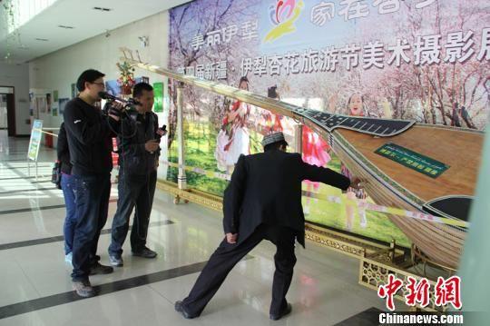 新疆伊犁第四届杏花旅游节承办方伊宁县委常委、宣传部长米娜瓦尔称,弹拨尔是北疆少数民族的代表乐器,制作巨型乐器展出意在弘扬民族传统文化,“没想到群众如此关注。”(朱景朝王小军)