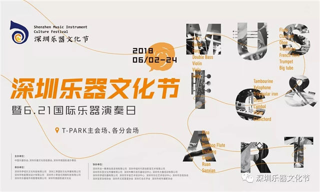 深圳,活力朝气的城市,充满着浓郁的文化氛围,民众同样有着广泛的艺术热情与文化需求;2018“ 深圳乐器文化节”正是由一群对音乐充满无限热忱的艺术工作者及行业大师倾力组织,他们怀着打造乐器界“文博会”的目标和音乐情怀,牵头社会组织机构,群策群力,共同打造这一盛会。活动时间是2018年6月2日-24日,持续大半个月时间,活动三十余场;活动主办单位有中国乐器协会、深圳乐器文化节组委会、深圳乐器行业协会(筹)。以福田T-PARK为主会场,辐射龙岗、坪山、宝安、南山等多个分会场,囊括比赛、街头快闪、音乐会、论坛等多种形式,打造全民共享的文化大餐。