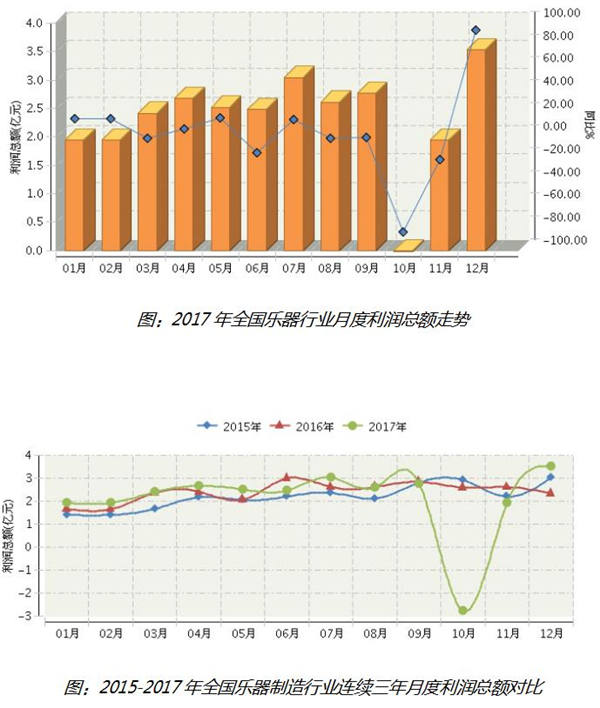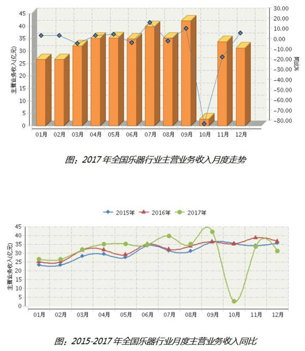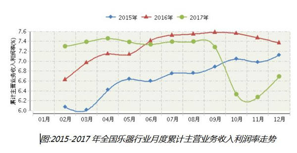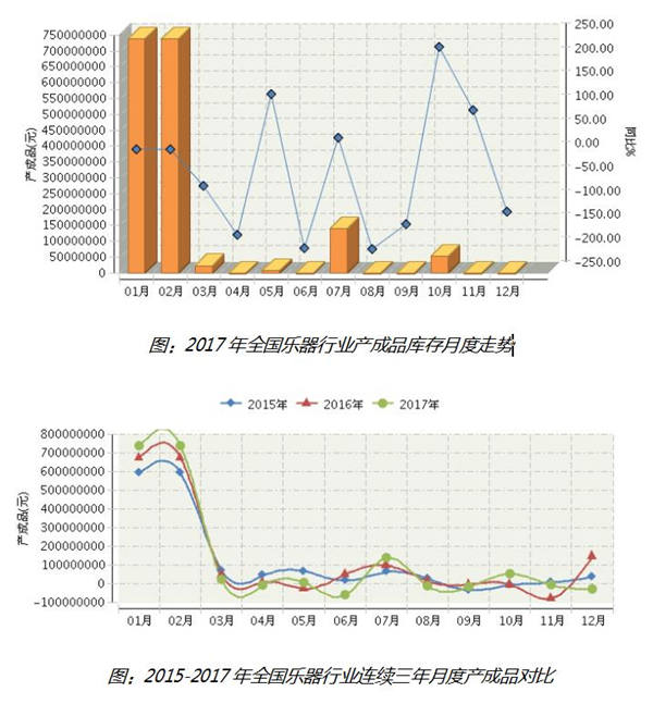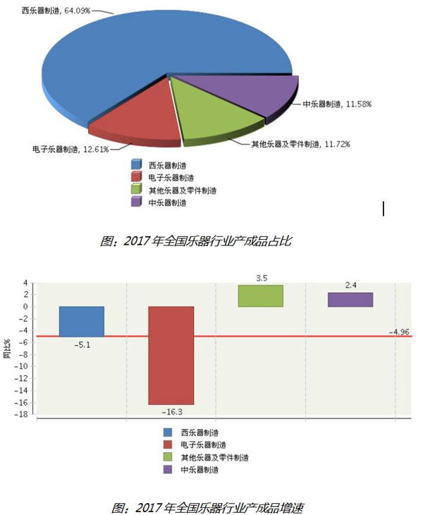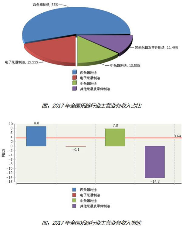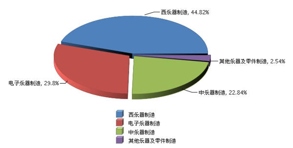从子行业分布来看,电子乐器大幅下降,累计产成品1.98亿元(占12.61%),同比下降16.32%;2017年,西乐器制造累计完成产成品10.06亿元(占64.09%),同比下降5.07%;中乐器制造累计完成产成品1.82亿元(占11.58%),同比增长2.35%;其他乐器及零件制造累计完成产成品1.84亿元(占11.72%),同比增长3.54%。