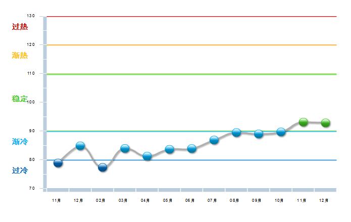 从分指标看,主营业务收入指数(93.53)和资产指数(101.34)一直在稳定区域内波动;出口指数(113.15)四月出现过热现象,全年高位震荡,最终停留在渐热区域;利润指数(92.86)年初偏冷,一路震荡上行,最终停留在稳定区域。