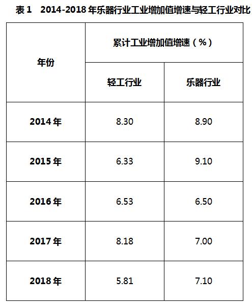 2018年1-12月,全国乐器行业累计工业增加值增速为7.10%,高于同期全轻工行业5.81%的平均水平。
