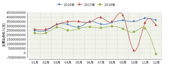 2018年,全国乐器行业累计完成主营业务收入391.45亿元,同比增长4.40%。月度走势总体走势趋于稳定,三月增长最快,增长20.3%, 12月统计局对数据进行了一次调整,当月数据波动较大,不具备参考价值。