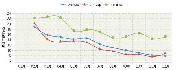 图14 2015-2018年全国乐器行业月度累计亏损面走势