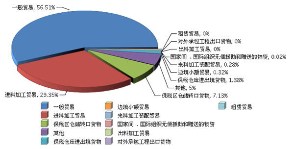图23 2018年全国乐器行业累计出口额贸易方式占比