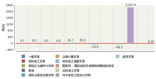 图24 2018年全国乐器行业累计出口额贸易方式增速对比