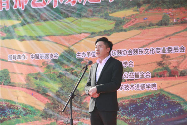 之后,江西岩前观光农业有限责任公司负责人王业龙代表此次公益活动的承办单位也对艺术家们的到来表示欢迎,他们将会积极协助各位艺术家,做好此次演出活动。除此之外,王业龙先生现场为三坊学校捐款一千元,以实际行动支持当地教育事业。
