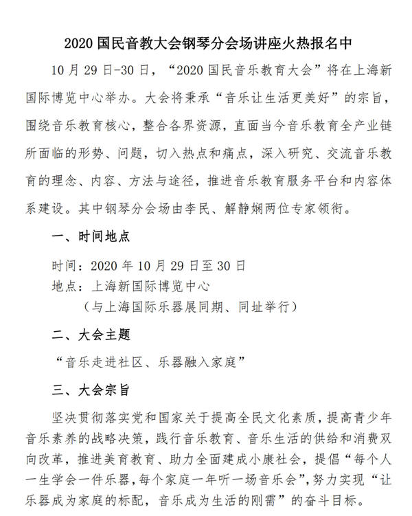 2020国民音乐教育大会钢琴分会场讲座火热报名中-中国乐器协会