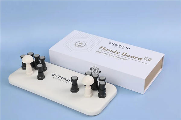 HandyBoard1.0便携乐器练习板一种适用于钢琴等键盘类乐器演奏的手指能力训练教辅工具,通过教具的练习完善及强化手指的运动能力,建立“良好的支撑、科学的触键、正确的发力”,确保手部精细运动训练更加标准化高效化。从运动学生理学角度,解决手指能力不足、手软、塌掌、折指、颠腕乃至速度、音色、控制等演奏技术问题。