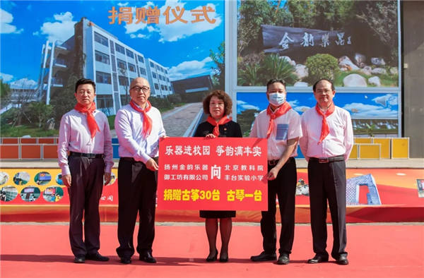 在校方组织的乐器捐赠仪式上,扬州金韵乐器向北京教科院丰台实验小学捐赠30台古筝和一台古琴,校方为金韵乐器颁发了荣誉证书。