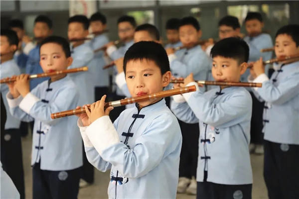 2016年,阜宁县教育局出台《推进器乐教学特色教育三年规划》,提出“义务教育阶段三年级以上学生人手一件乐器,人人都有一技之长”;到现今,阜宁的孩子们学习乐器已有五个年头,全县86所中小学校,在校学生11万多人,学会一种以上乐器的学生8万多人,其中三年级以上学生乐器教育普及率100%;全县300人以上口琴、竖笛方阵65个,100人以上葫芦丝、古筝、腰鼓、莲湘方阵39个,50人以上吉他、尤克里里、手风琴、二胡、陶笛、葫芦丝等方阵22个。