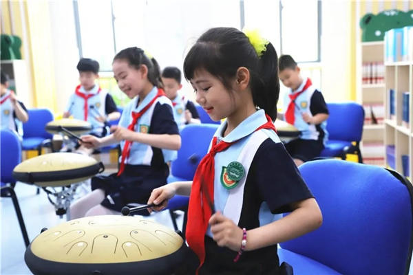 今年阜宁县的“6.21”活动分3个主会场,52个分会场进行。在主会场之一的附小新兴路校区,学校打造了“民族乐器”和“西洋乐器”两个音乐角,兴趣相投的同学课余时间就汇聚到这里,学习乐器知识,赏析知名乐曲,交流演奏习得,不亦乐乎。活动上,学校二胡特色班的孩子们用一曲《八月桂花遍地开》引得观摩团直竖大拇指;一年级手风琴特色班的小朋友演奏的《铃儿响叮当》让人忍俊不禁、直呼可爱。
