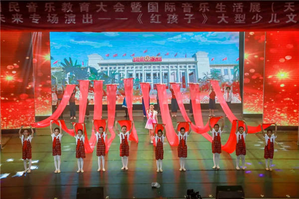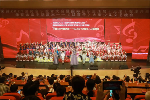 7月15日晚,伴随着动感十足的打击乐表演《鼓动华夏》,祝贺2021国民音乐教育大会暨国际音乐生活展(天津)开幕华夏未来专场演出——《红孩子》大型少儿文艺晚会在华夏未来少儿艺术中心举行。