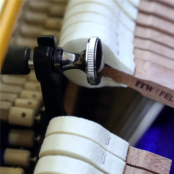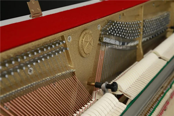 琴弦采用德国RÖSLAU琴弦 音色纯净 华丽出众,机械式压弦,超长的弦列,保证琴弦振动的稳定释放。上门、键侧木加装“星海杯”指定标识,采用新型激光UV微米喷涂技术,色彩鲜艳、环保无污染(不可频繁用水或酒精擦洗)。击弦机采用新型材料碳黑色背档、时尚碳黑色支架;背档、联动器以及弦槌芯均采用欧洲优质蓝色毛毡,音色圆润饱满。