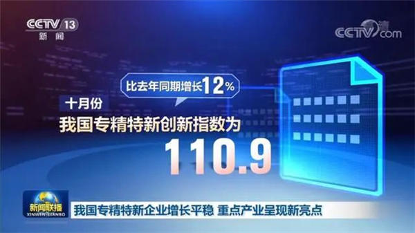 工业和信息化部赛迪研究院的最新统计显示,今年10月,我国专精特新创新指数为110.9,比去年同期增长12%。从区域看,北京、上海、广东等城市创新动能突出,创新指数同比增长均超过20%。从产业看,新一代信息技术保持较强的创新活力,关键技术、先进工艺等创新成效显著。