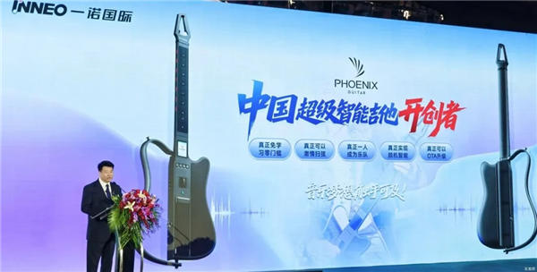 在2025一诺国际乐器全球合作伙伴大会暨PHOENIX智能乐器新品发布会上,一诺国际总经理钱军建亲自发布K1超级智能吉他,并指出:“K1不仅是一件产品,更是一把打开音乐世界的钥匙,我们希望通过科技的力量,让音乐从少数人的专长,变为多数人的日常。”