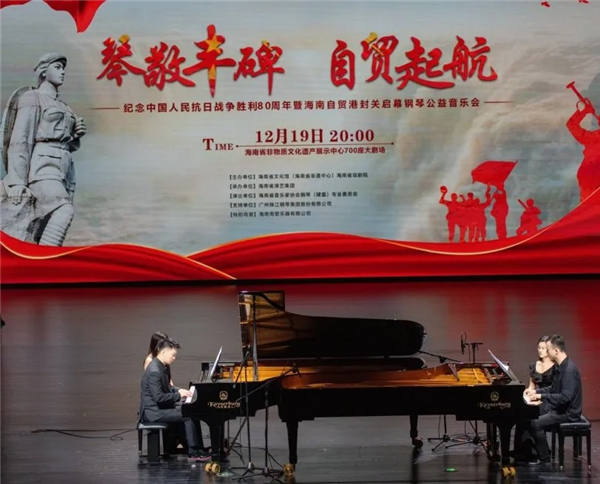 这场集红色纪念与时代献礼于一体的艺术盛宴,既深情回望抗战岁月,又热情礼赞海南自贸港封关启幕,用珠江·恺撒堡钢琴的黑白琴键架起历史与未来的桥梁,让红色精神在自贸港的热土上焕发全新艺术生命力。