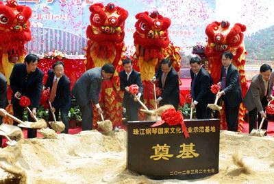 珠江钢琴集团董事长王润培等领导为珠江钢琴国家文化产业示范基地奠基培土
