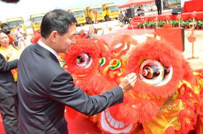广州市副市长、增城市委书记曹鉴燎在珠江钢琴国家文化产业示范基地奠基礼上为醒狮点睛