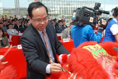广州市国资委主任黄伟林在珠江钢琴国家文化产业示范基地奠基礼为醒狮点睛