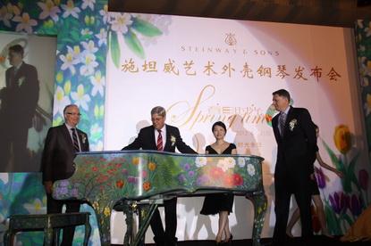随着董事长胡斯曼、总经理潘顿、施坦威销售总监位炜及美国驻华使馆参赞柯立文缓缓揭开“春日时光”艺术外壳钢琴的神秘面纱,在全场来宾热烈期待中,静谧矗立的艺术钢琴渐渐露出“曼妙真容”,顿时洋溢出阵阵清新的春日气息,博得全场热烈掌声。