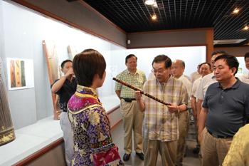 中国乐器协会网讯:8月24日,中共上海市委原副书记、上海市政协原主席王力平,中共上海市委原常委朱达人、中共上海市委宣传部原副部长孙刚等市委老领导来到上海民族乐器一厂视察指导工作。王力平一行人在厂长王国振等企业领导班子的陪同下,参观了企业设立的民族乐器陈列馆,并欣赏敦煌新语组合的民乐演奏。