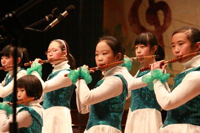 音乐会上民乐除了古筝合奏外,还有琵琶合奏《三六》和竹笛齐奏《快乐的小笛手》,无论是琵琶那“转轴拨弦三两声”的娴熟功夫和“大珠小珠落玉盘”的跌宕起伏,还是笛子那“清响破空冥”的穿透悠扬和“散入春风满洛城”的连绵回响,都是一次美的享受。音乐的美感是受诸于我们的听觉,让我们从音韵的高低抑扬、轻重缓急里感受到艺术的魅力。