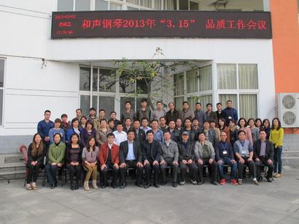 中国乐器协会网讯:在2013年“3.15国际消费者权益日”,福州和声钢琴有限公司再次召开由近六十名骨干员工参加的“2013年度和声钢琴‘3.15’品质工作会议”。这是和声公司从2008年以来连续第六年召开“3.15品质工作会议”。
