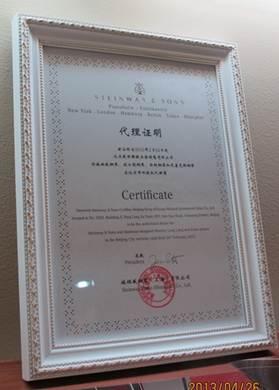 2013年,公司与世界顶级钢琴品牌——德国施坦威钢琴公司合作,开设了德国施坦威钢琴4S专卖店,全面代理施坦威旗下的施坦威、波士顿、艾塞克斯、郎朗品牌。专卖店以其丰富的全系列家族产品,高质量的服务赢得众多消费者的青睐,销售一路看好。