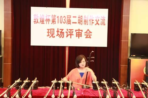 中国乐器协会网讯:由上海民族乐器一厂主办的第103届“敦煌杯”二胡制作交流现场评审会于7月26日在上海召开。江苏省演艺集团民族乐团乐队首席召唤、南京艺术学院教授欧景星、上海音乐学院教授陈春园及上海馨忆民族室内乐团成员李志卿担任本次评审会评委。在评审会开始之前,评审老师对本次参赛的23把二胡进行了初步鉴定,对二胡的外观及用材方面给予了充分的肯定。