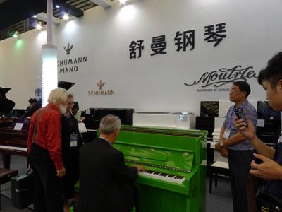 中国乐器协会网讯:舒曼钢琴如约而至2013年上海乐器展,与往年不同的是,这次舒曼钢琴带去舒曼全新深邃系列 SCHUMANN prodound SERIES E8-121,个性明朗的外观设计、完美纯净的音色以及灵敏舒适的手感,让络绎不绝的参观者和经销商啧啧称赞,爱不释手,同时也获得了众多业内行家的青睐和赞叹,舒曼钢琴的每一步发展都以坚实的科技含量和实力发展为基础。