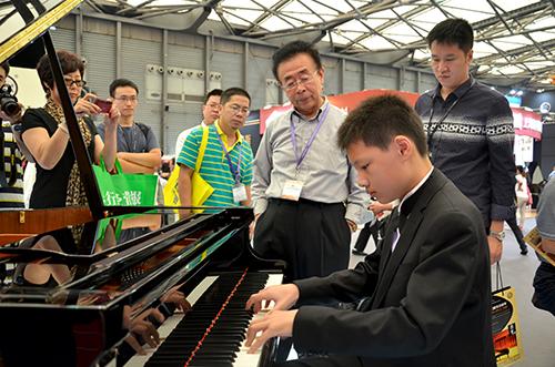 中国乐器协会网讯:今年上海国际乐器展期间,珠江钢琴集团全球首位签约小演奏家鞠小夫在课余时间来到展会现场,在珠江钢琴集团展位上用恺撒堡九尺三角钢琴倾情演奏海顿、李斯特等各家多首乐曲,引来众多观众围观,成为展会一大亮点。
